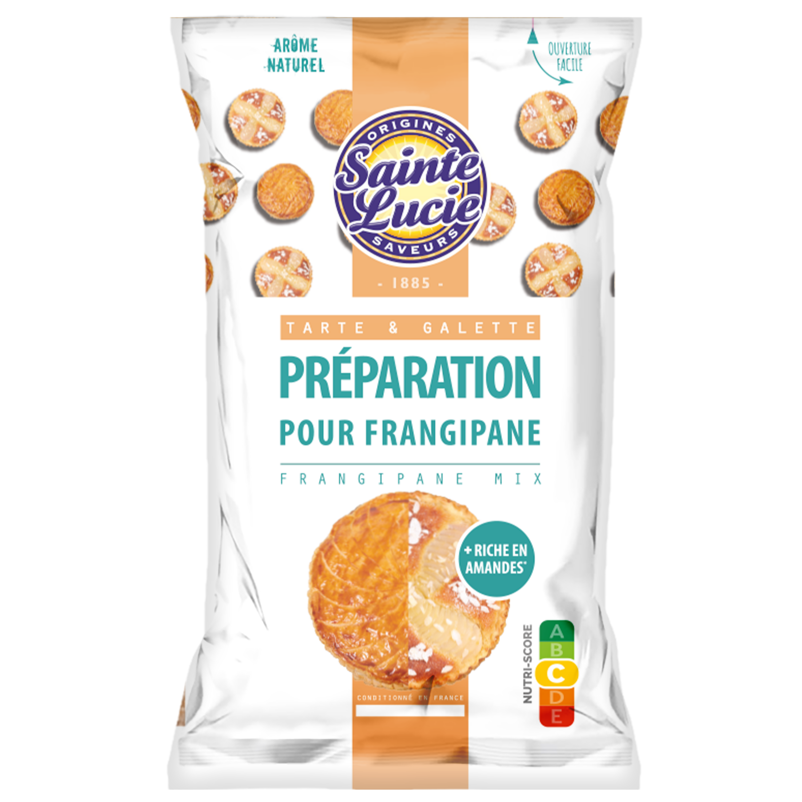 Sucre, correcteur d’acidité : citrate de sodium, épaississant : caroube, gélifiant : carraghénane, amidon modifié (E1422).