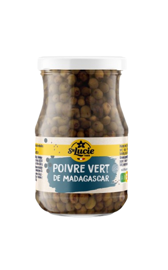Le poivre vert est récolté avant maturité, lorsqu’il est encore jeune et tendre. En verrine, conservé en saumure, il offre une intensité médium mais avec une nuance aromatique plus complexe, mêlant herbacé, fumé et une légère salinité qui relève les sauces et terrines.